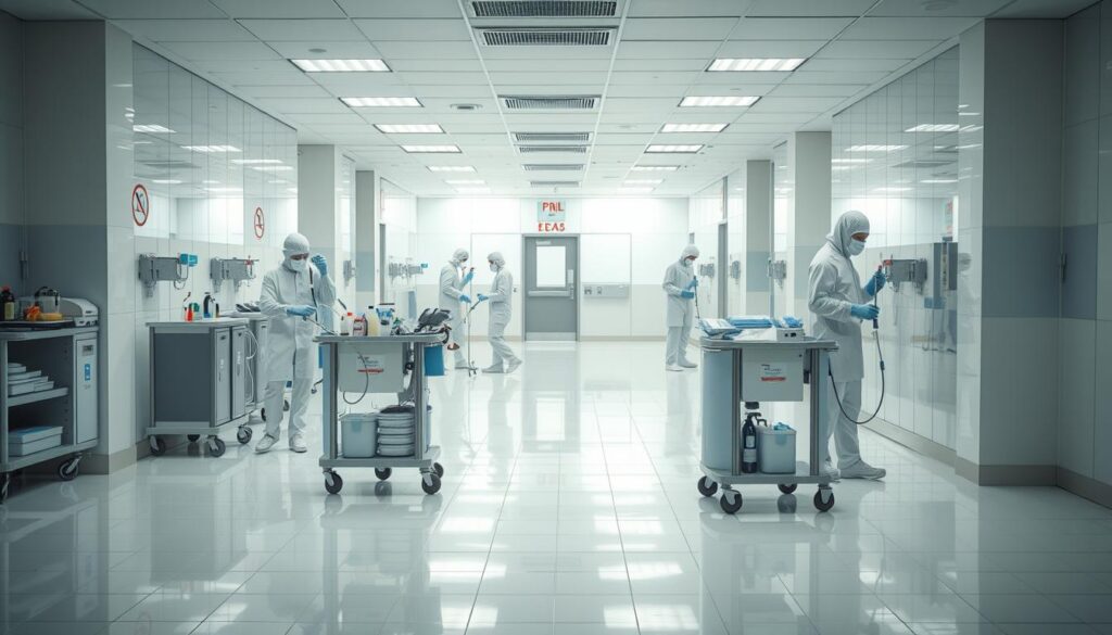 Disinfection services are also vital. They clean and disinfect all areas, like operating rooms and patient rooms. This ensures patients get the best care in a clean place.